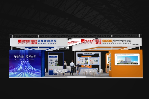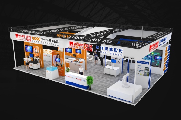 在顏色搭配上,展臺(tái)以黃白為主色調(diào),營造出簡(jiǎn)潔、明亮的氛圍,使整個(gè)空間顯得寬敞大氣,突出了展品和信息的呈現(xiàn)。同時(shí),大量運(yùn)用藍(lán)色作為輔助色,增強(qiáng)了科技感。藍(lán)色的線條、標(biāo)識(shí)等元素在白色背景上起到了良好的點(diǎn)綴和強(qiáng)調(diào)作用。此外,展示區(qū)的部分區(qū)域采用了橙色,為展臺(tái)增添了活力和亮色,避免了整體色彩搭配的單調(diào)感。
