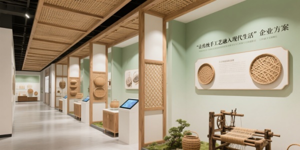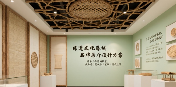 非遺文化藤編品牌展廳設計方案企業簡介傳承千年藤編技藝,以“讓傳統手工藝融入現代生活”為使命,展臺需展現自然韻味與現代風格的融合。